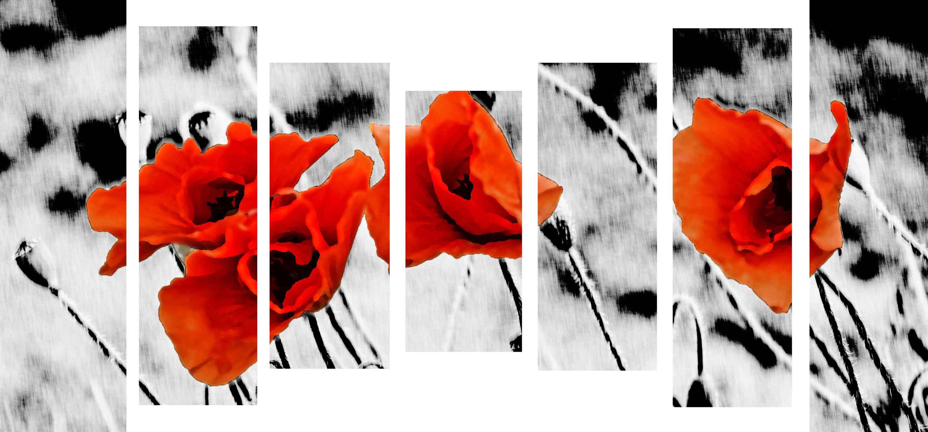 Modułowy obraz - maki na białym tle idealnie wkomponuje się w każde nowoczesne wnętrze salonu, biura czy kawiarni i będzie cieszył oko