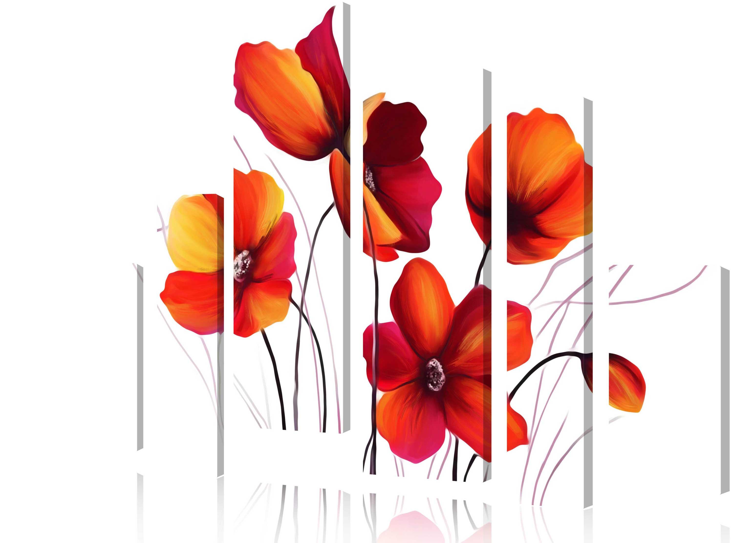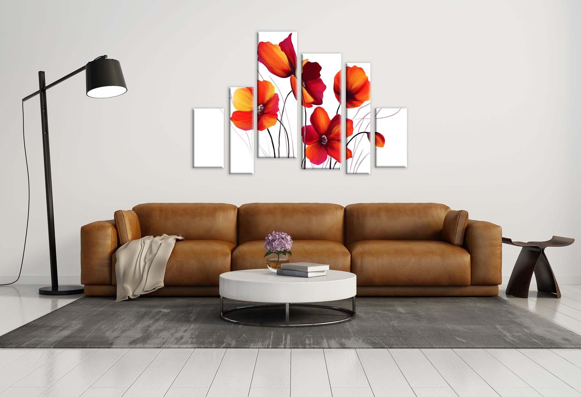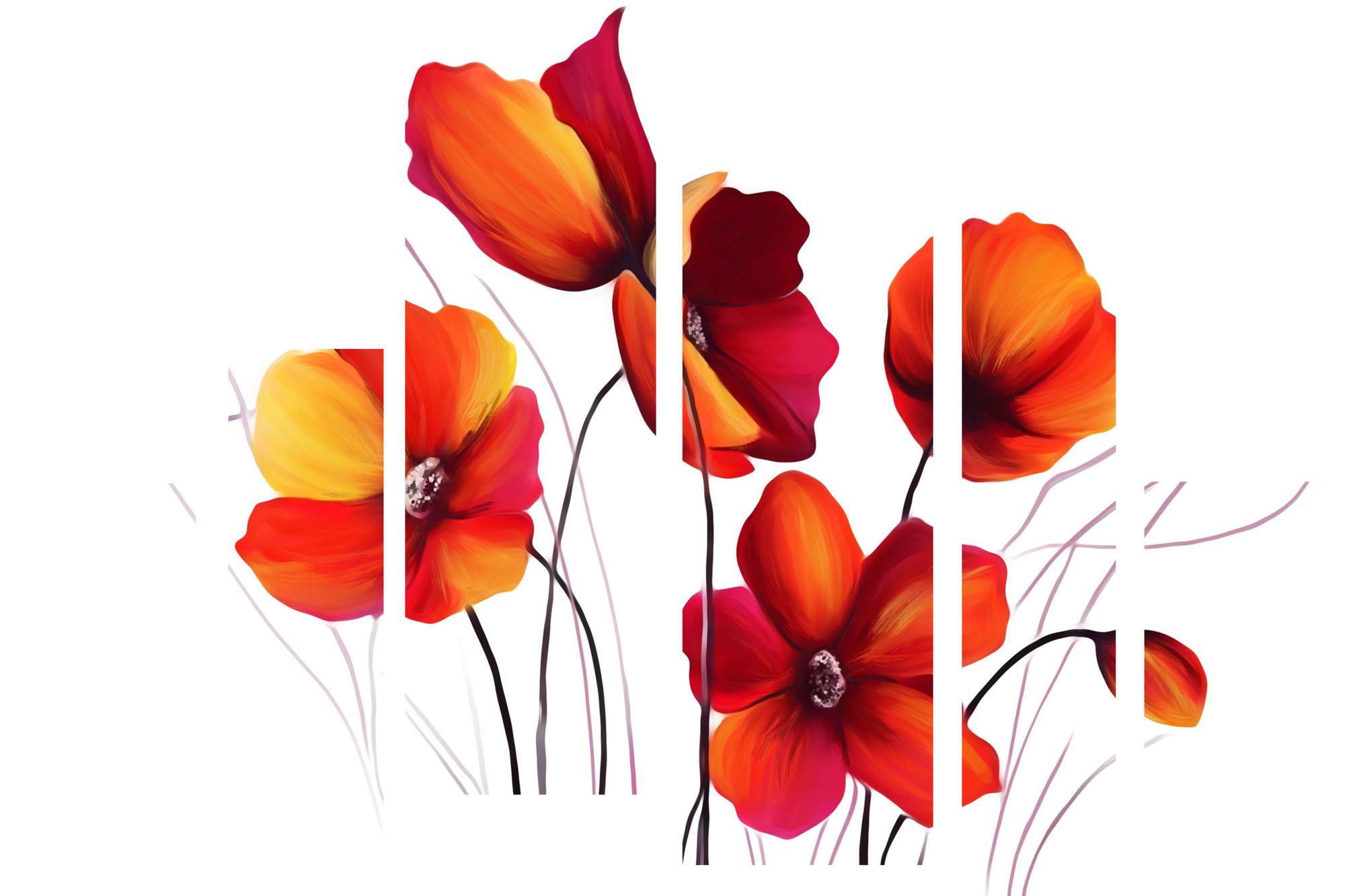 Modułowy obraz - maki na białym tle idealnie wkomponuje się w każde nowoczesne wnętrze salonu, biura czy kawiarni i będzie cieszył oko