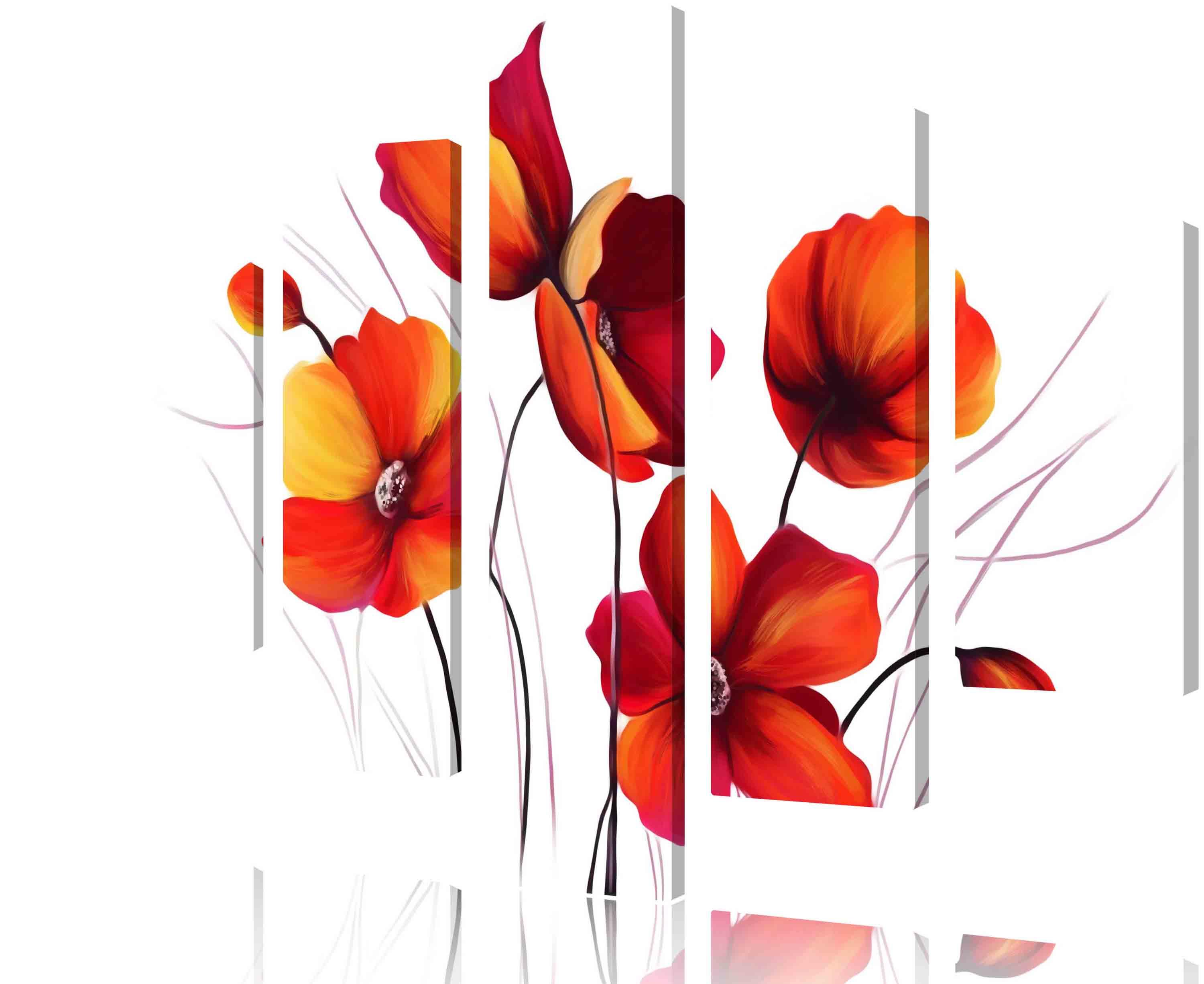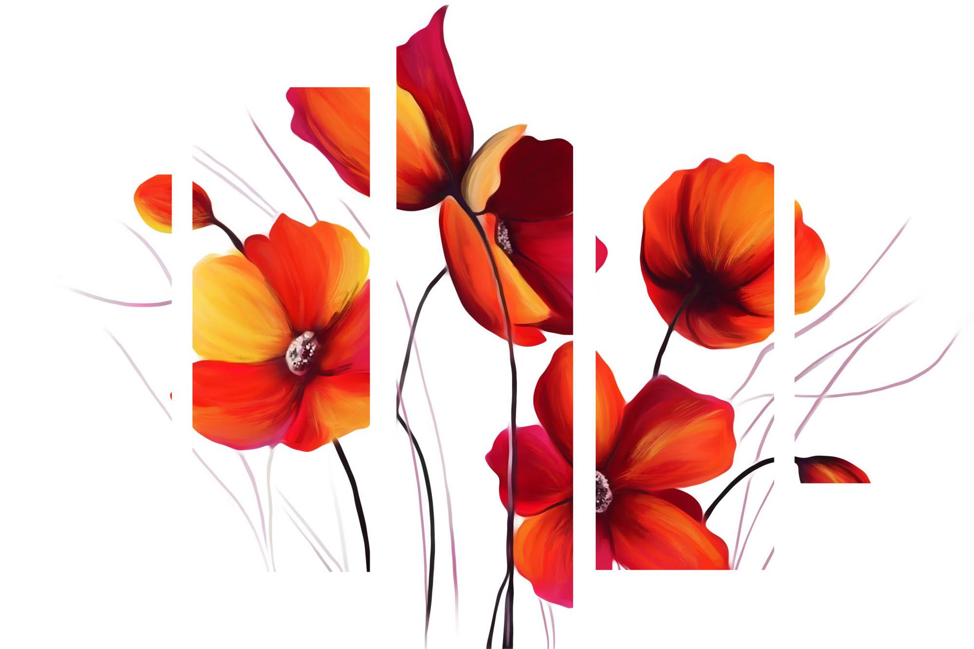 Modułowy obraz - maki na białym tle idealnie wkomponuje się w każde nowoczesne wnętrze salonu, biura czy kawiarni i będzie cieszył oko