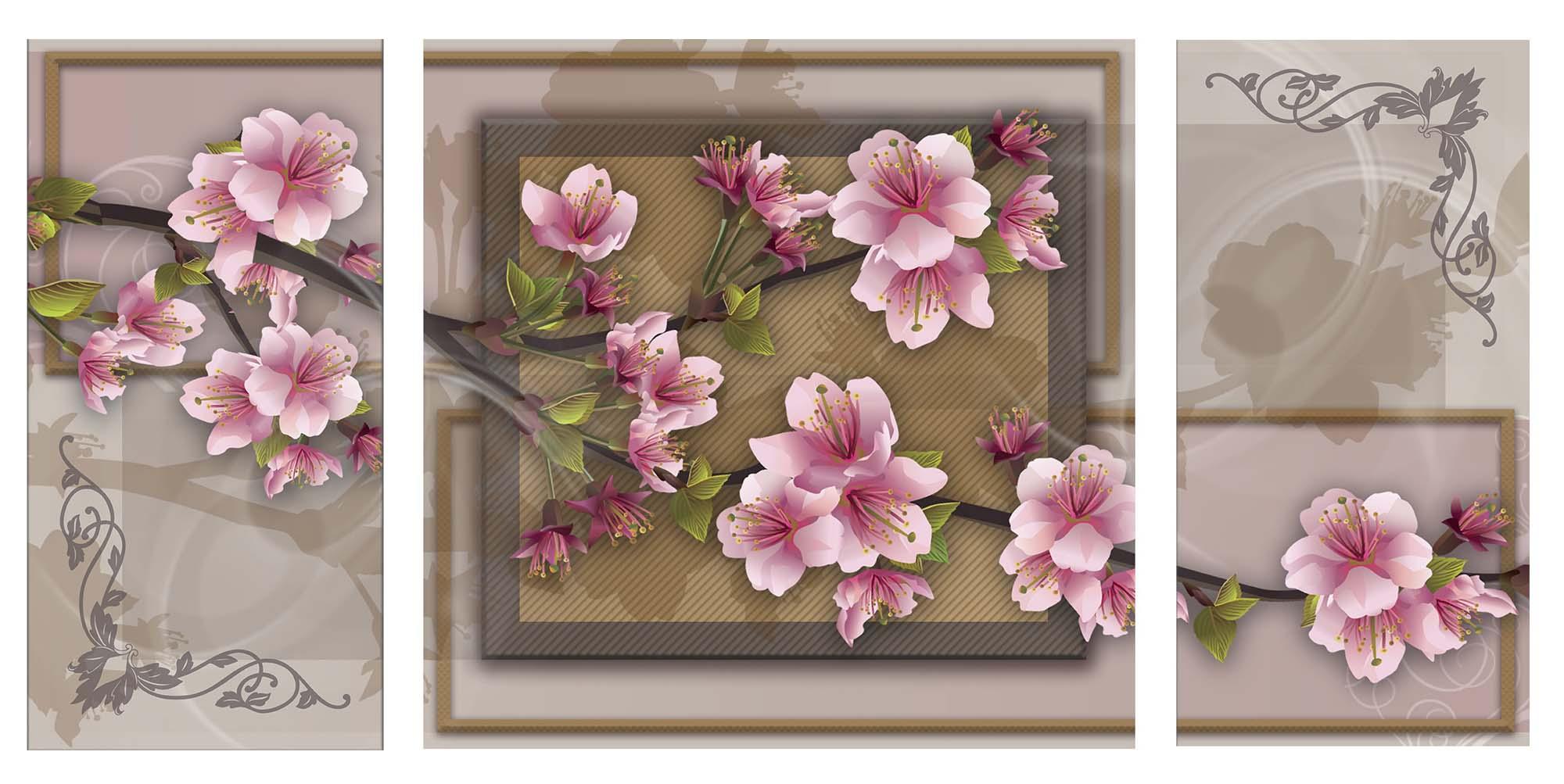 Modułowy obraz - kwiaty wiśni idealnie wpasuje się w każde nowoczesne wnętrze salonu, biura czy kawiarni i będzie cieszył oko