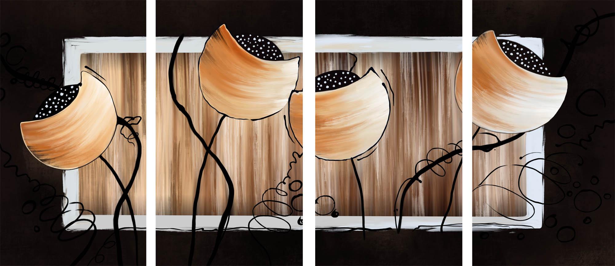 Modułowy obraz - czarny delikatny kwiatek na brązowym tle