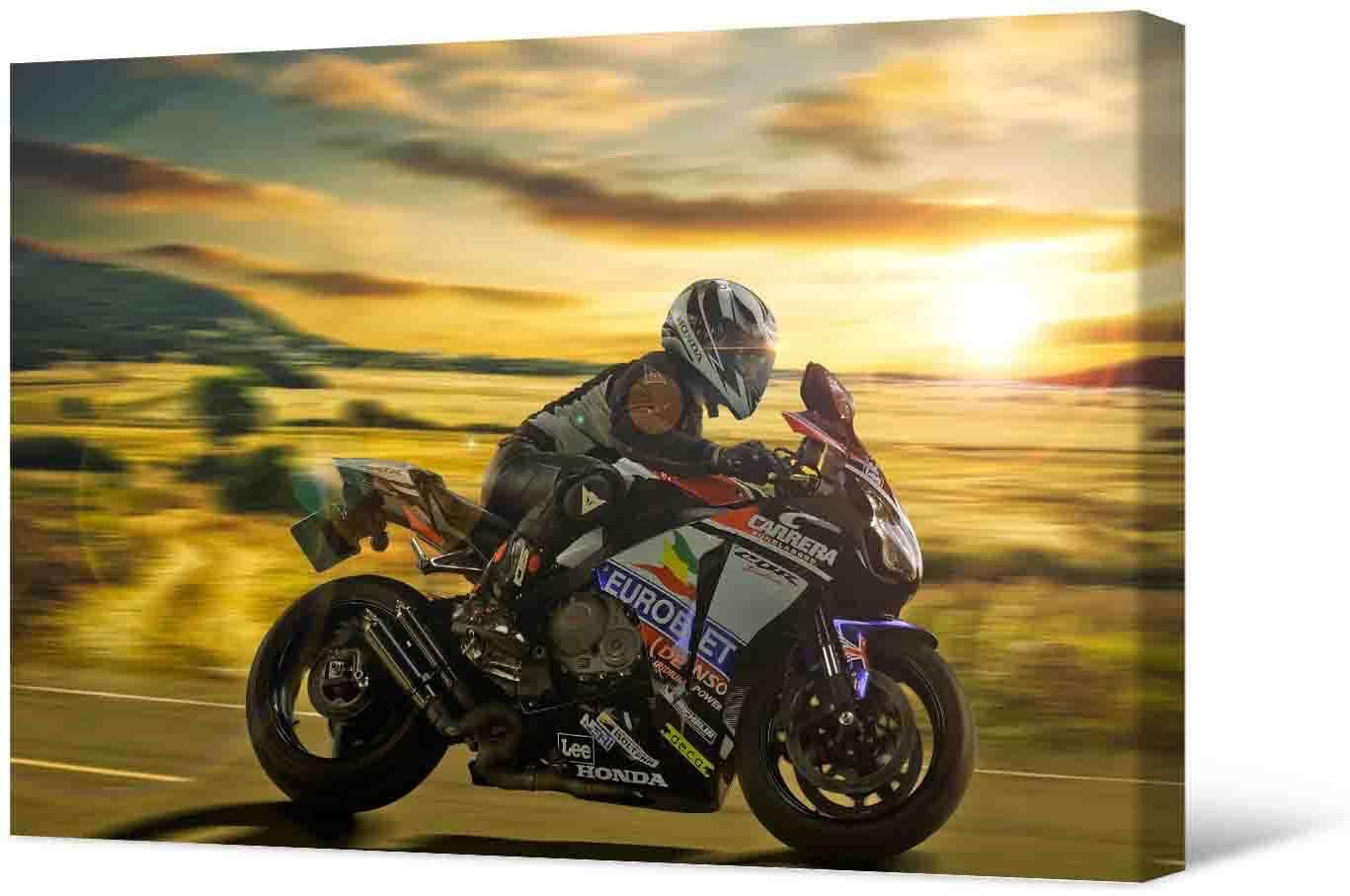 Fotoobrazek - motocyklista na motocyklu idealnie wpasuje się w każde nowoczesne wnętrze salonu, biura czy kawiarni i będzie cieszył oko