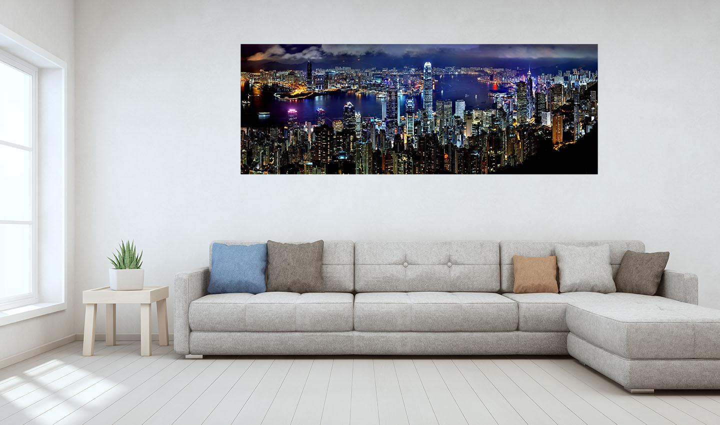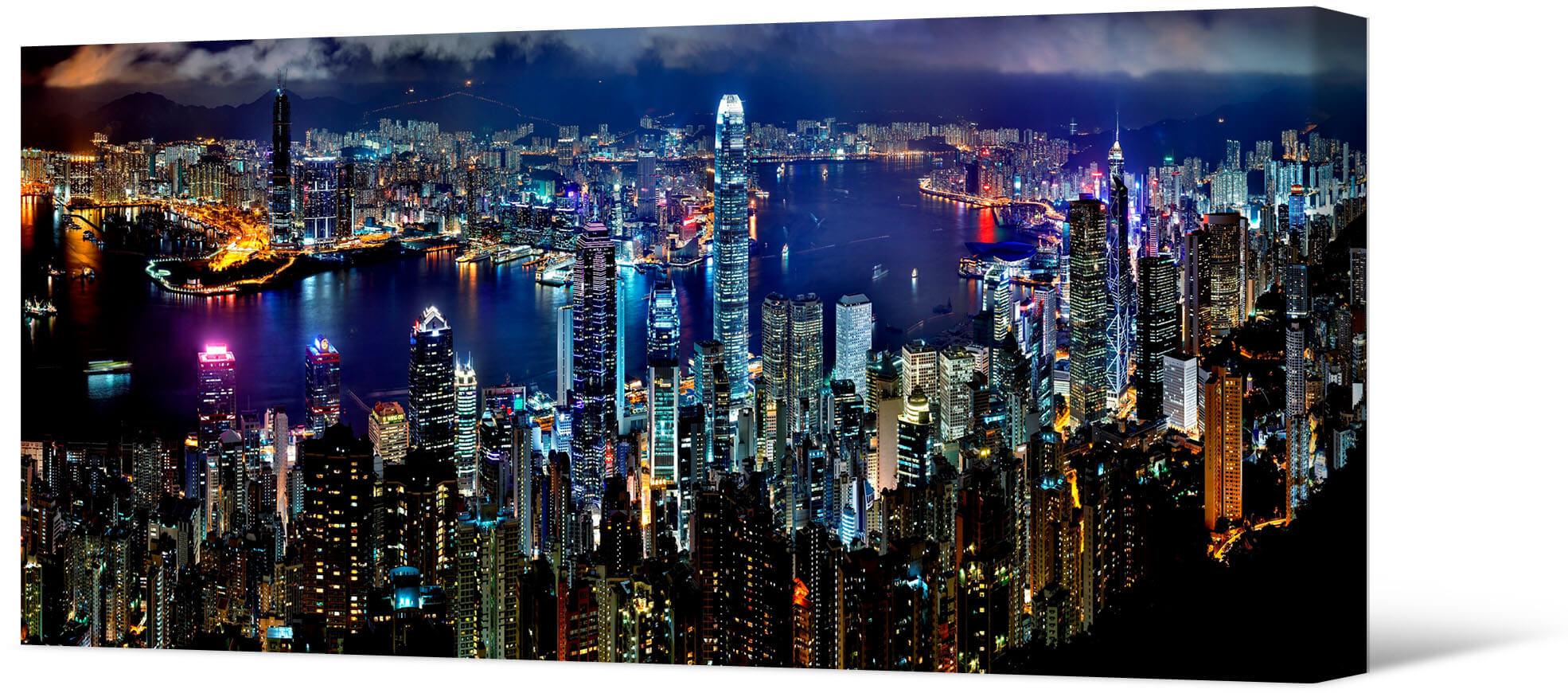 Fotografia na płótnie Splendor Hong Kongu nocą. To miasto nigdy nie śpi. Hongkong słynie z życia nocnego i klubów. Spacer wieczornym Hongkongiem na zawsze pozostanie w Twojej pamięci jako kalejdoskop świateł, reklam i niekończących się drapaczy chmur.