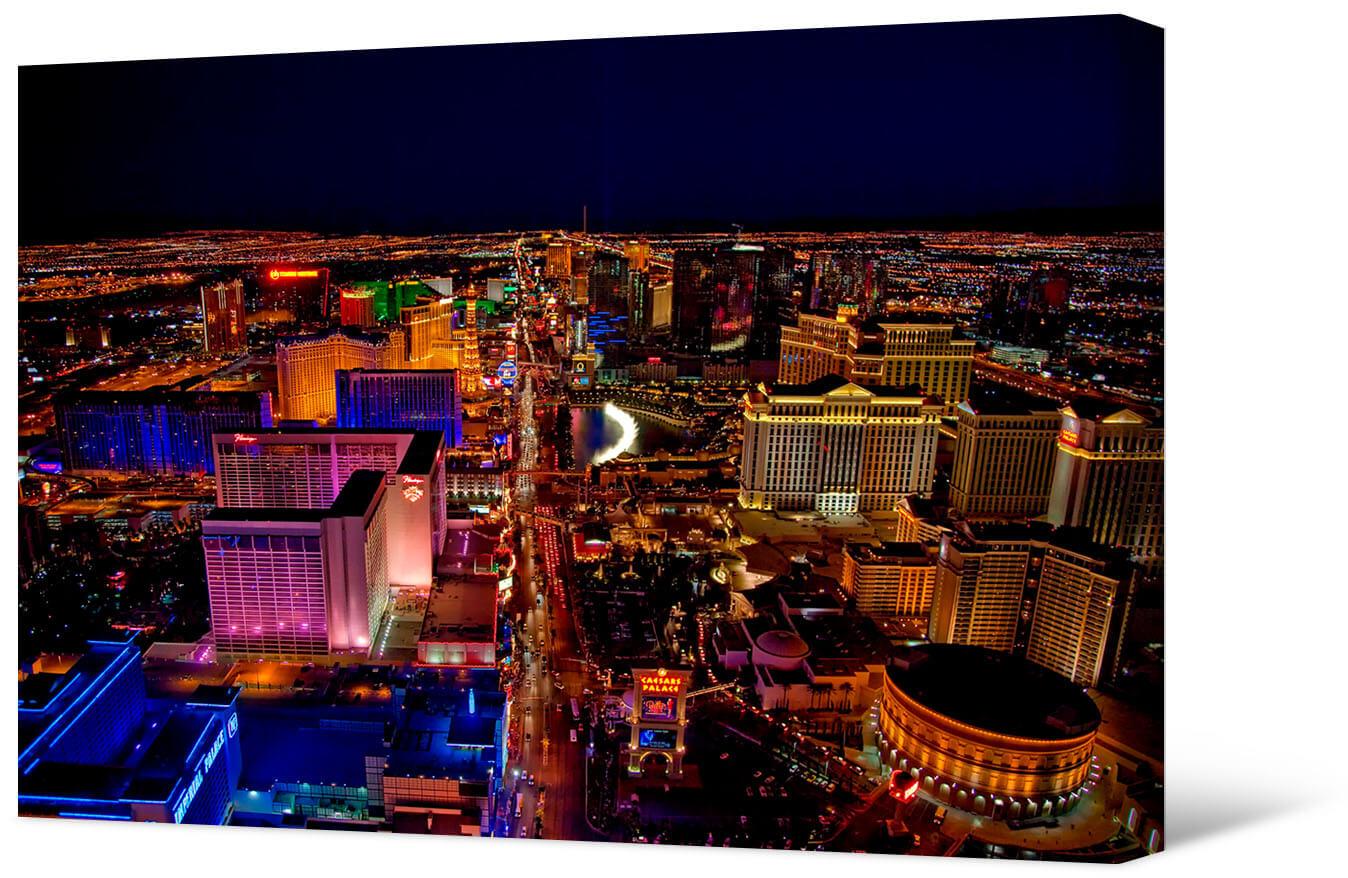 Malarstwo fotograficzne na płótnie Nocne życie Las Vegas. Ten kurort na pustyni Mojave w Nevadzie słynie z bogatego życia nocnego. Znajduje się tu wiele całodobowych kasyn i innych obiektów rozrywkowych.