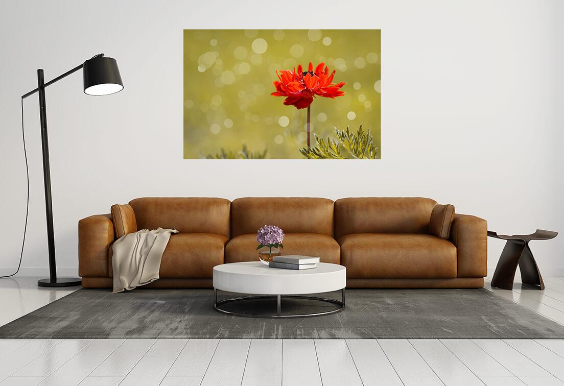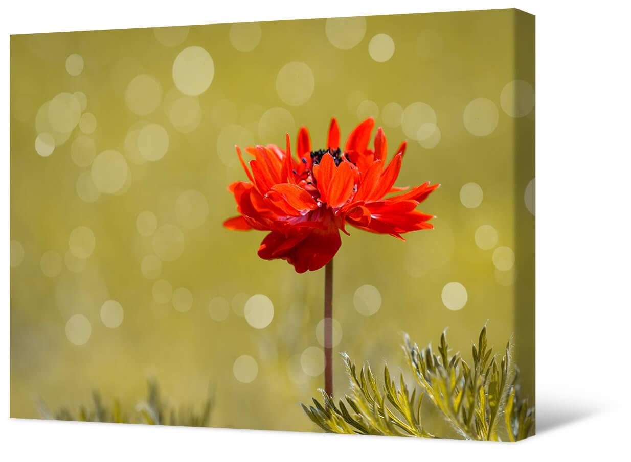 Fotografia na płótnie Czerwony anemon. Samotny kwiat w słońcu wygląda afirmacyjnie. Ukwiały są kruche i delikatne, ale silne, jako jedne z pierwszych pojawiają się wiosną.