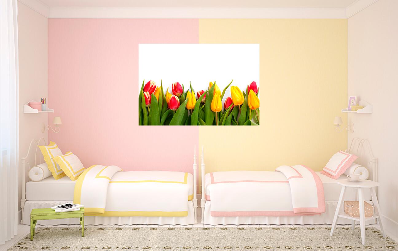 Fotografia na płótnie Tulipany. Jasne, piękne tulipany są jednymi z pierwszych, które zachwycają nas wiosną. Te kwiaty symbolizują radość, szczęście, dobrobyt.