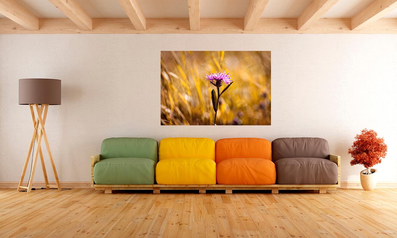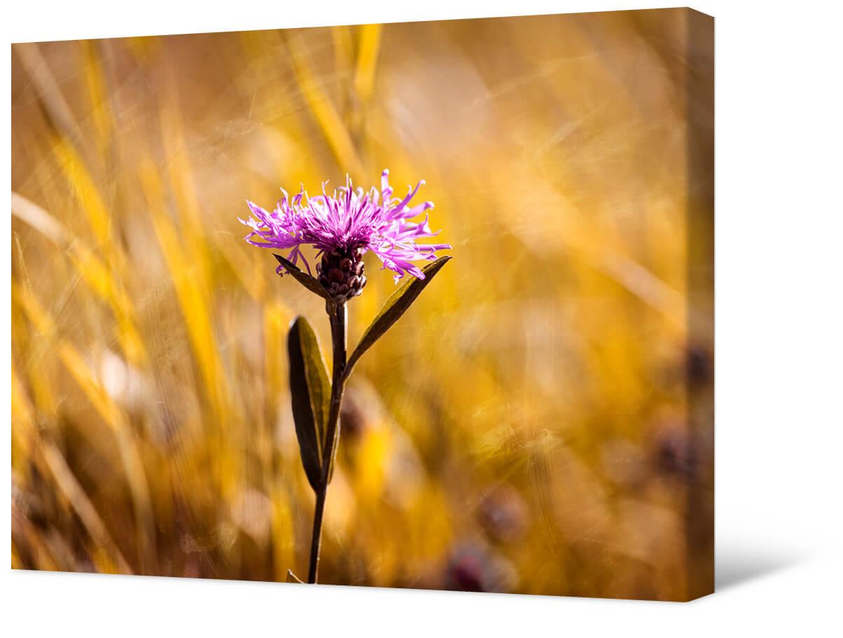 Malowanie fotografii na płótnie Chaber. Duży obraz jednego kwiatu pozwala szczegółowo go zbadać i docenić wdzięk. Chabry symbolizują czystość, życzliwość i czułość.