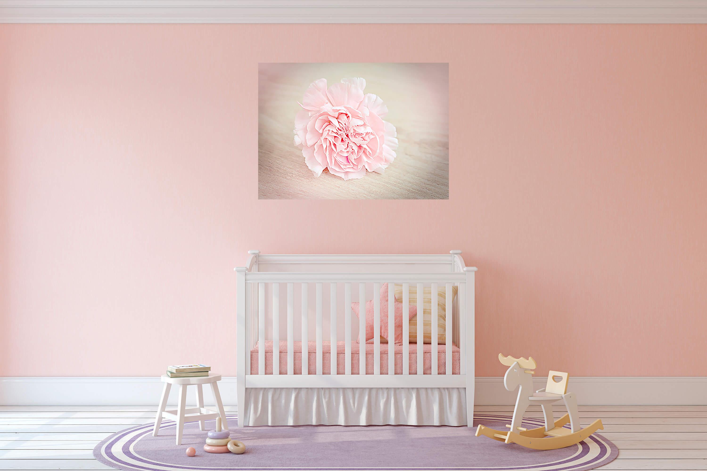 Malowanie fotografii na płótnie Jasnoróżowy kwiat goździka. Obraz w romantycznych i pastelowych kolorach. Różowy goździk jest bardzo piękny i wzruszający.