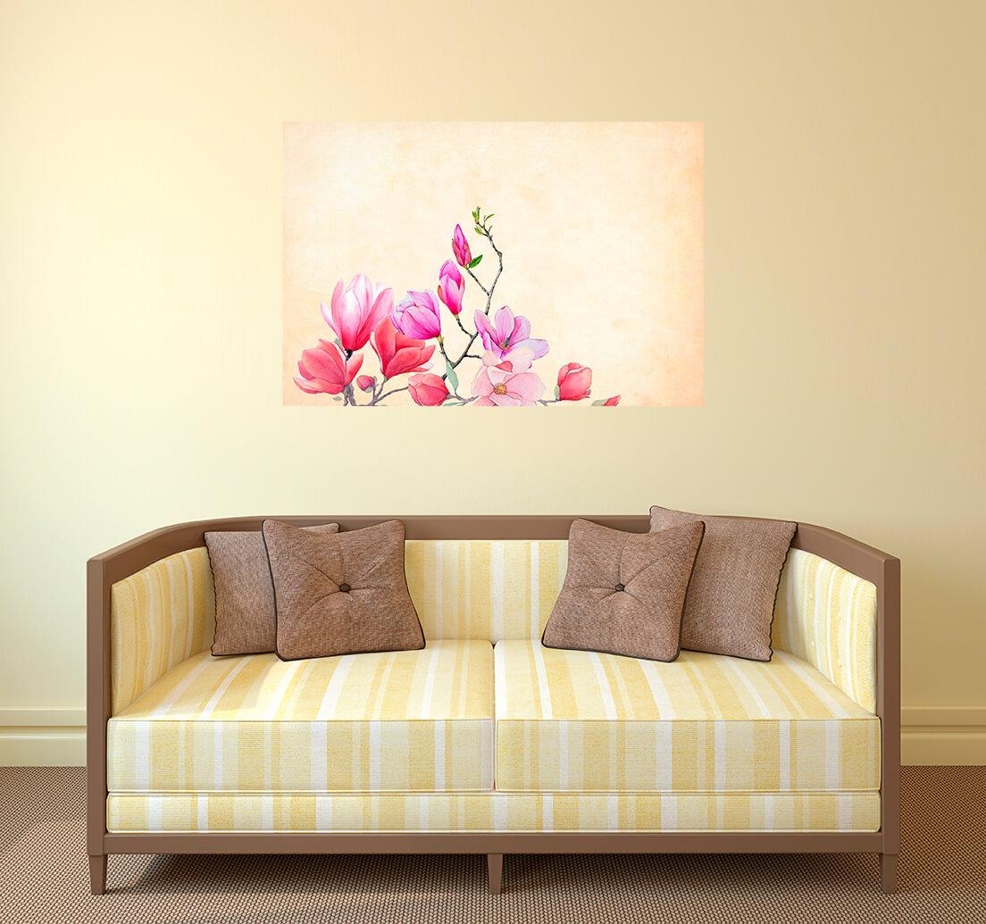 Fotografia na płótnie Magnolia. To jedna z najpiękniejszych roślin na świecie. Kwiaty magnolii są czyste i piękne, podziwianie ich to prawdziwa rozkosz. Na zdjęciu artysta subtelnie obrysował każdy płatek.