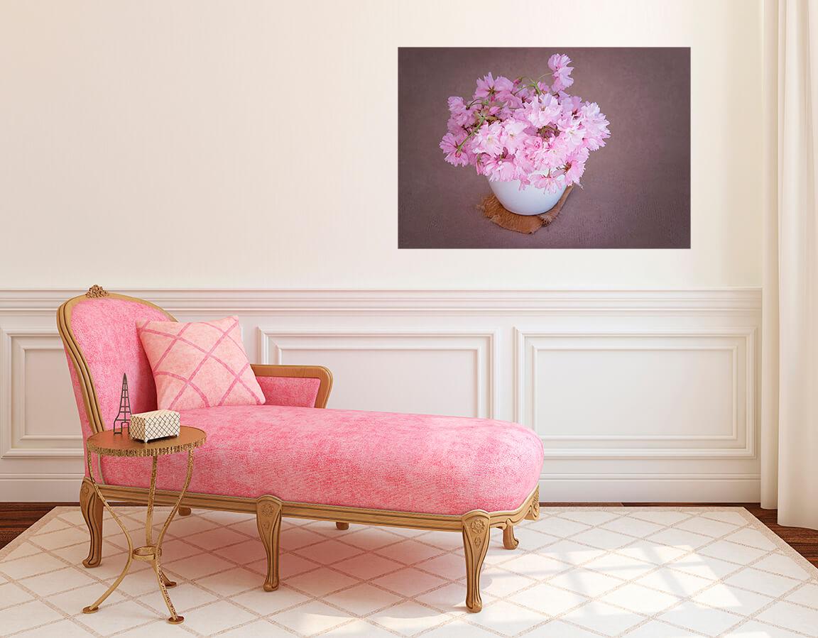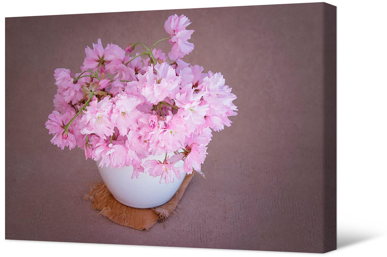 Fotografia na płótnie Delikatny różowy bukiet. Uszyta w kojących kolorach. Zdjęcie przedstawia wazon z pięknymi różowymi kwiatami.