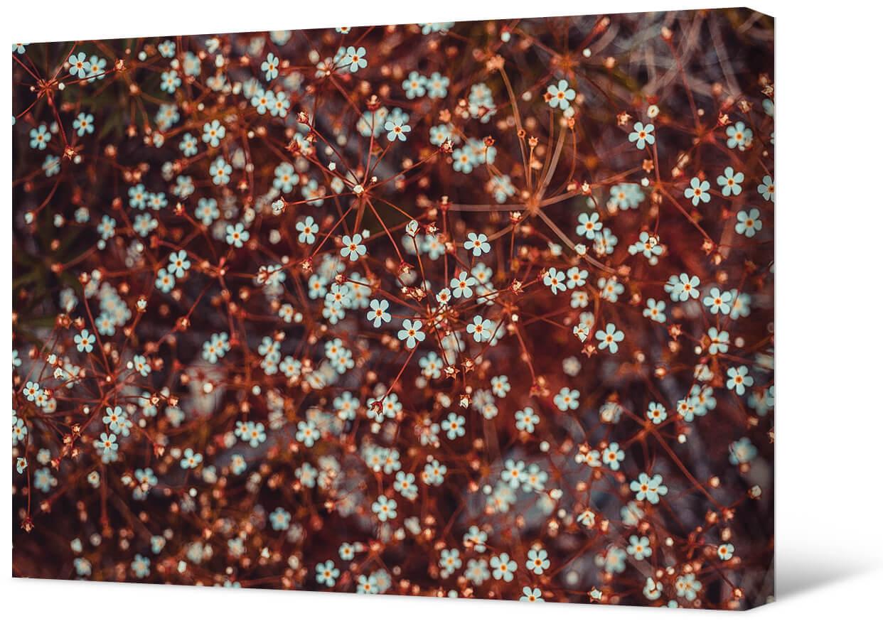 Malowanie zdjęć na płótnie Niezapominajki. Wiele cienkich gałęzi z drobnymi kwiatami. Niezapominajki są jasne i przyciągają wzrok, pomimo bardzo małych rozmiarów.