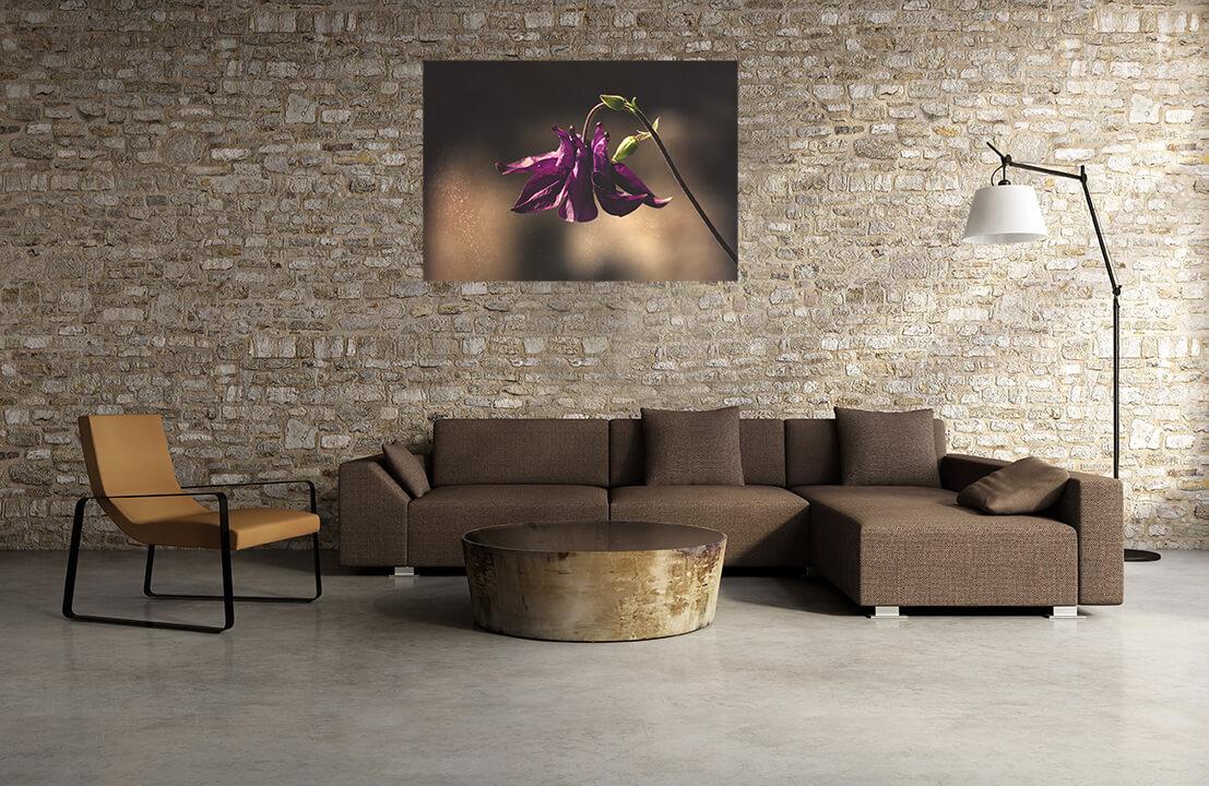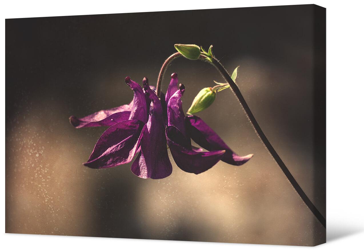 Fotografia na płótnie Fioletowy orlik. Ta roślina jest bardzo piękna, jej kwiaty mają niezwykły kształt, przypominający motyle lub egzotyczne ptaki. Jeden kwiat, wykonany w zbliżeniu, pozwala dobrze go zobaczyć we wszystkich szczegółach.