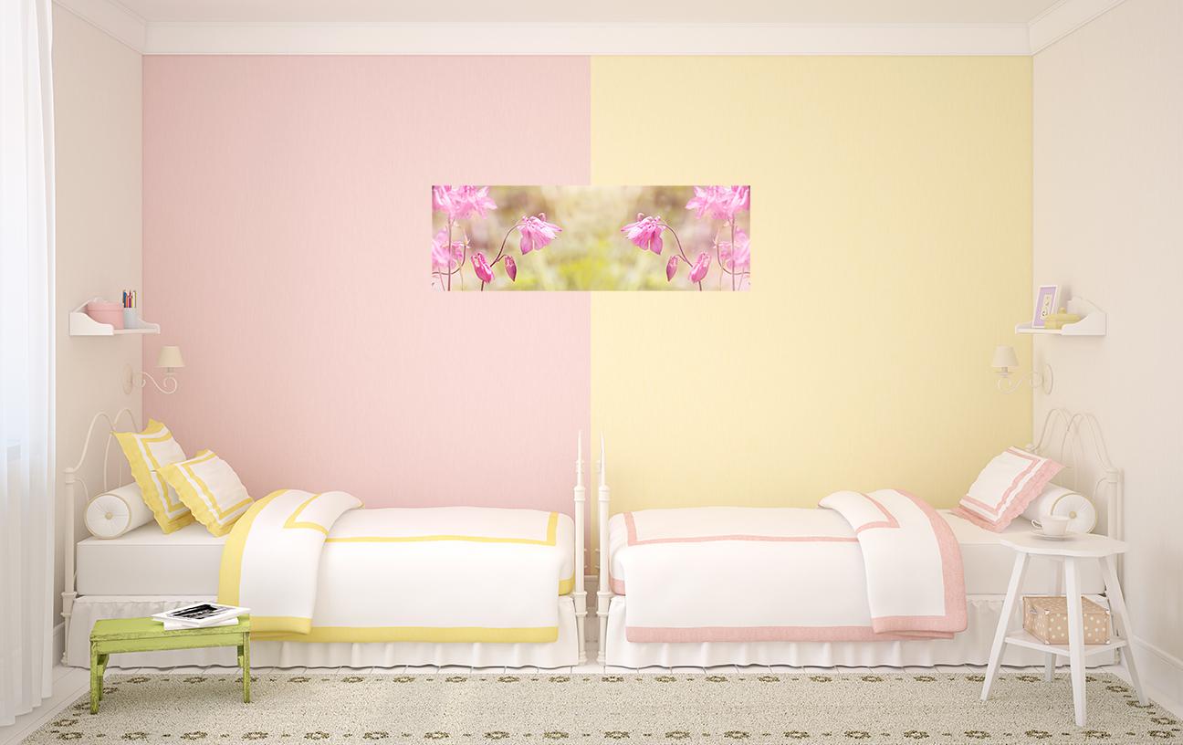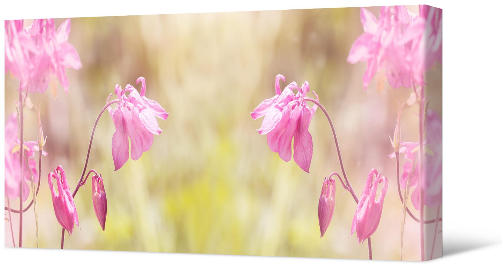 Fotografia na płótnie Różowa orlik. Kwiaty są ułożone symetrycznie na płótnie i wydają się patrzeć na siebie. Aquilegia to bardzo piękne i delikatne kwiaty, można je podziwiać bez końca.