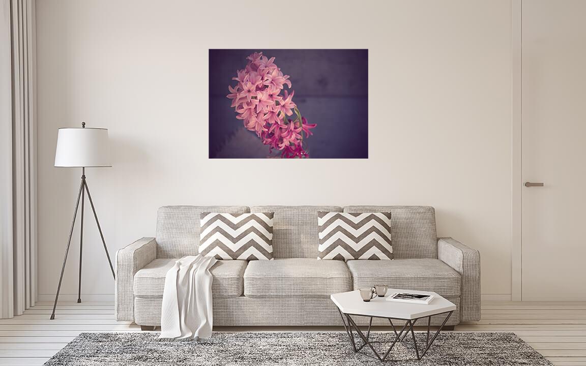 Fotografia na płótnie Hiacynt. Projekt obrazu jest tak delikatny i wzruszający jak te pierwsze wiosenne kwiaty. Elegancja hiacyntów i pastelowe odcienie ich płatków fascynują i przyciągają wzrok.