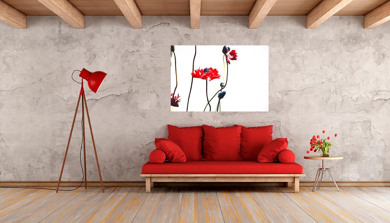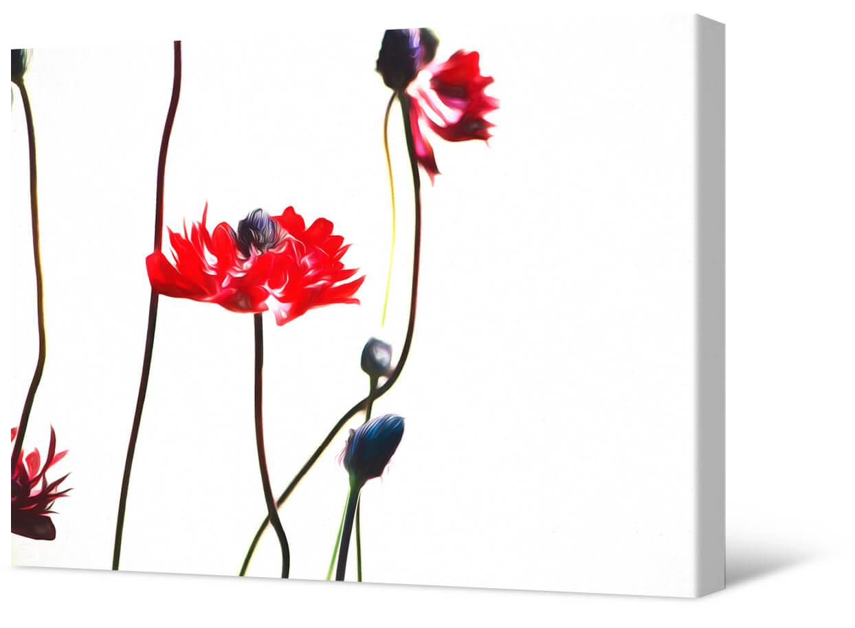 Fotografia na płótnie Kontrastowe maki. Wyraziste i oryginalne malarstwo. Stylizowany obraz przedstawia jaskrawoczerwone maki na smukłych czarnych łodygach.