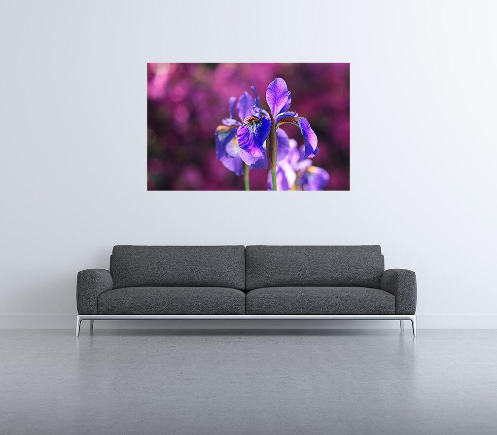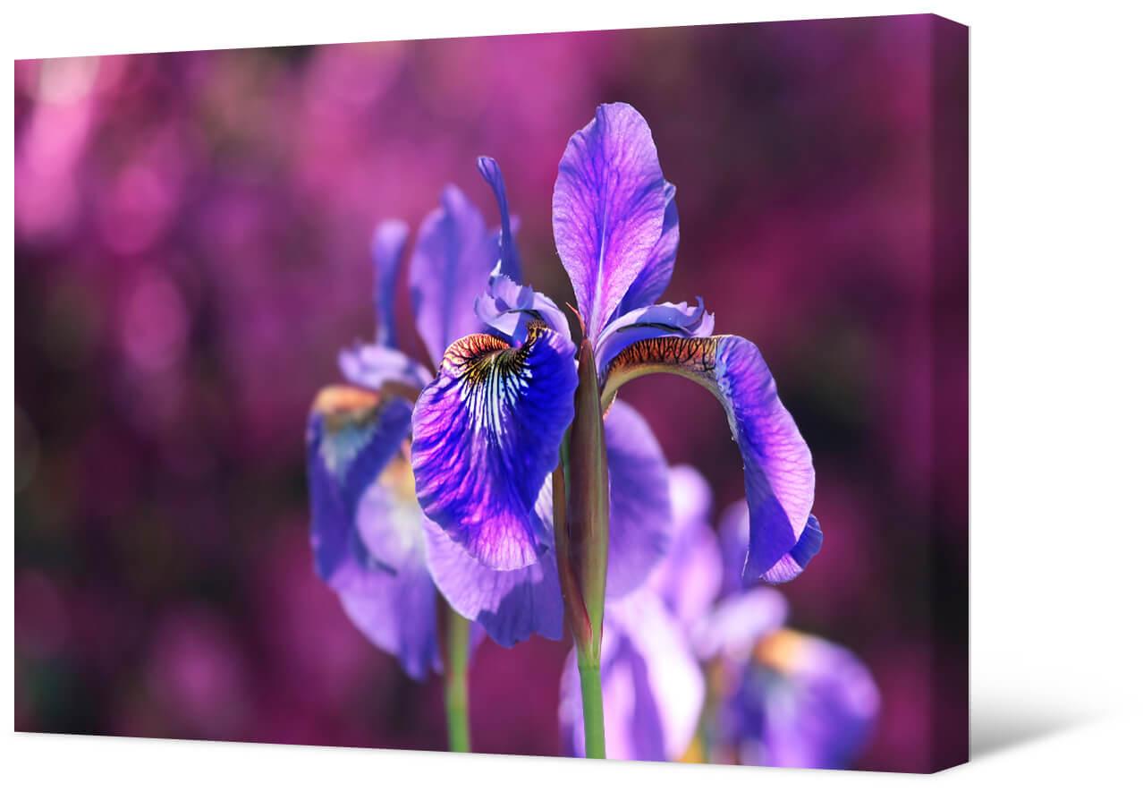 Fotografia na płótnie Fioletowy irys błotny. Piękne, pełne wdzięku kwiaty ozdobią każde pomieszczenie. Obraz jest bardzo spektakularny i jasny.