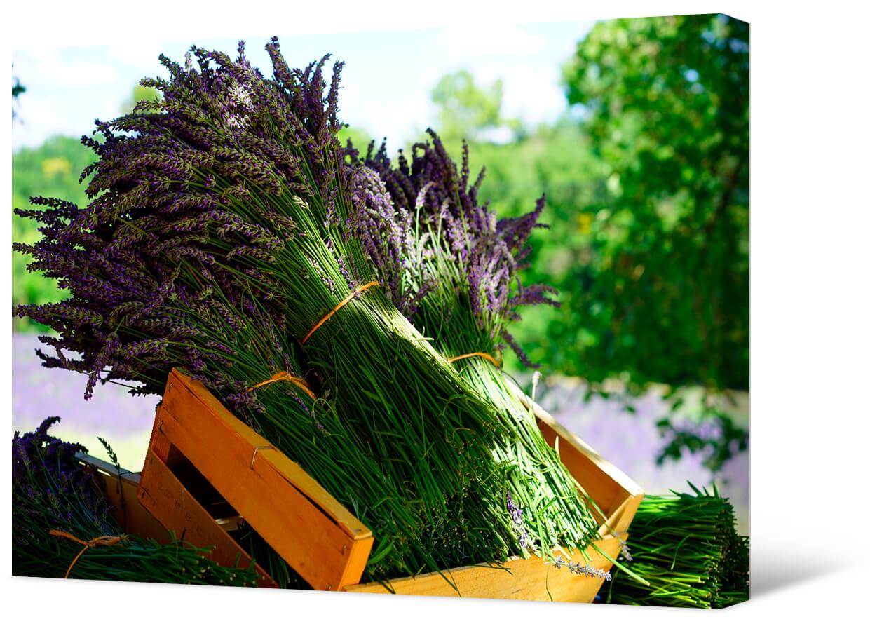 Fotografia na płótnie Bukiety lawendy. Przedstawia pociętą i pęczek lawendy. Bardzo klimatyczne i atrakcyjne zdjęcie do Twojego domu.
