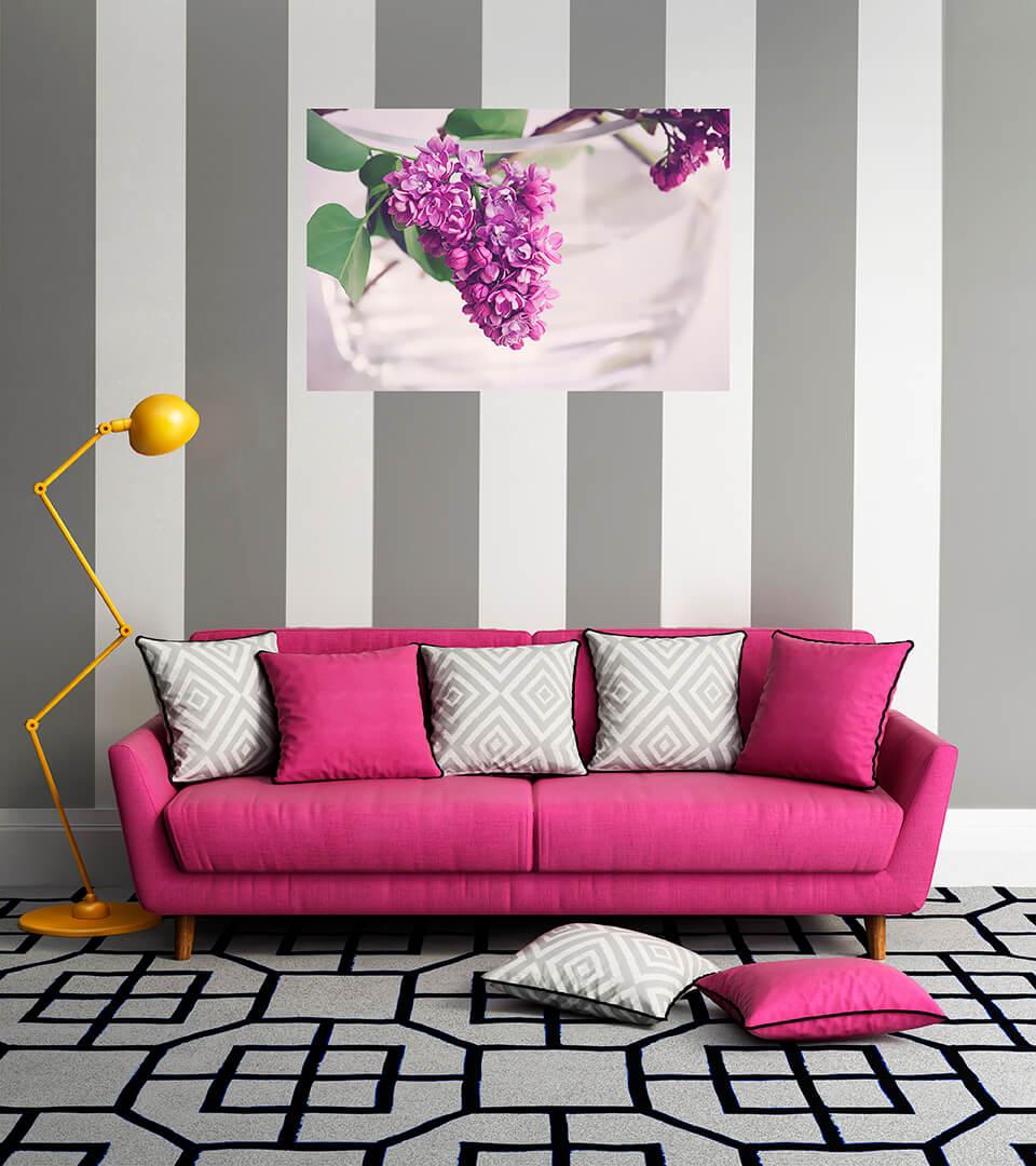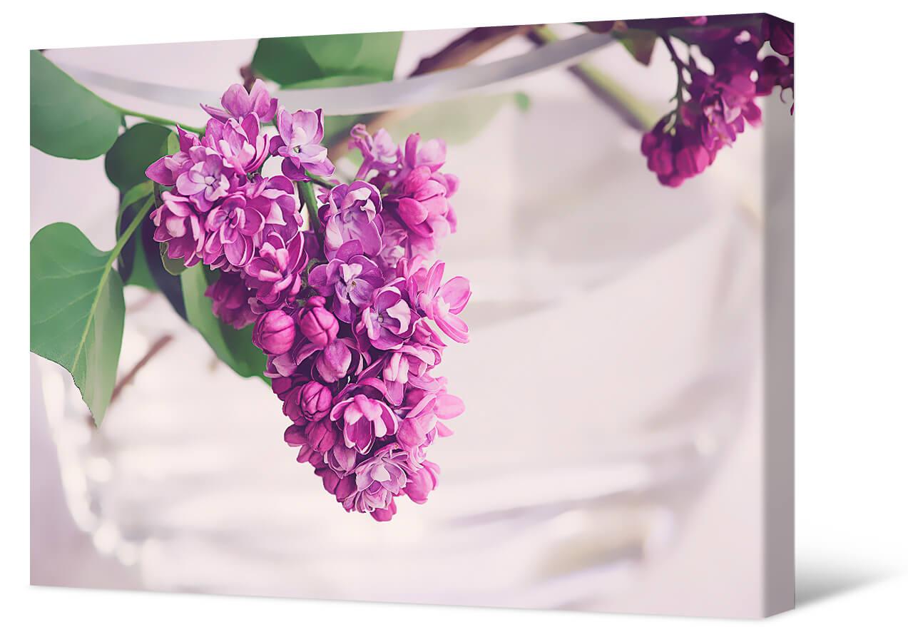 Fotografia na płótnie Gałązka bzu. Grono fioletowych bzów jest bardzo realistyczne. Piękny, bogaty kolor i doskonałość kwiatostanu przyciągają wzrok i zachwycają.