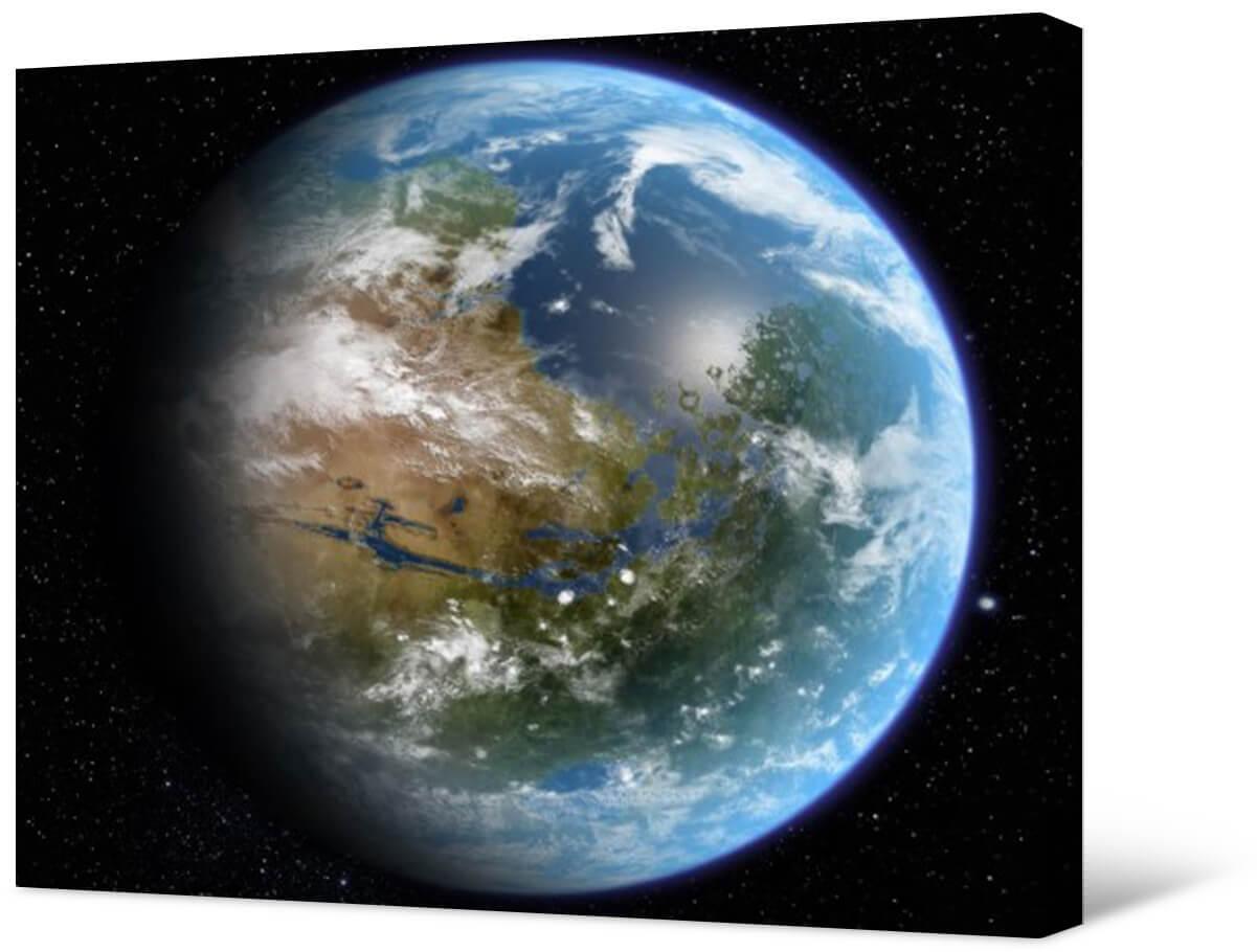 Fotografia na płótnie Zelma. Obraz planety w kosmosie zabierze Cię daleko w galaktykę. Pasuje do każdego wnętrza, spodoba się fanom tego motywu.