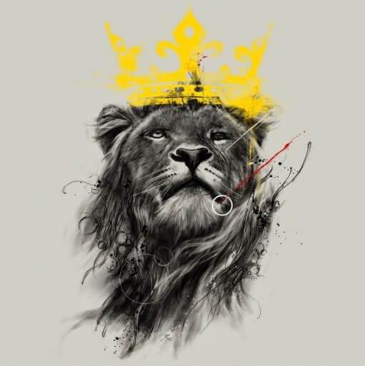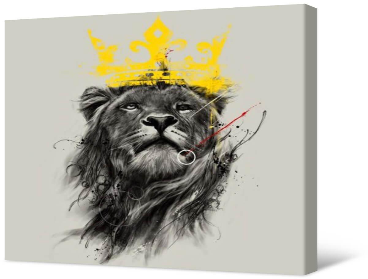 Fotografia na płótnie Król Lew. Żółty i szary to jedno z najpiękniejszych połączeń. Żółta korona na tle szarego lwa szczególnie podkreśla królewską pozycję bestii.