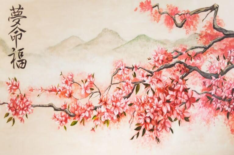 Fotografia na płótnie Sakura. Japońskie motywy i pastelowe kolory nadadzą wnętrzu szczególnego uroku i wyrafinowania. Obróbka akwareli pozwoliła uzyskać bardzo delikatny i piękny obraz.