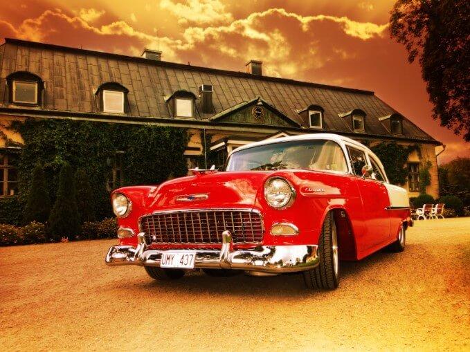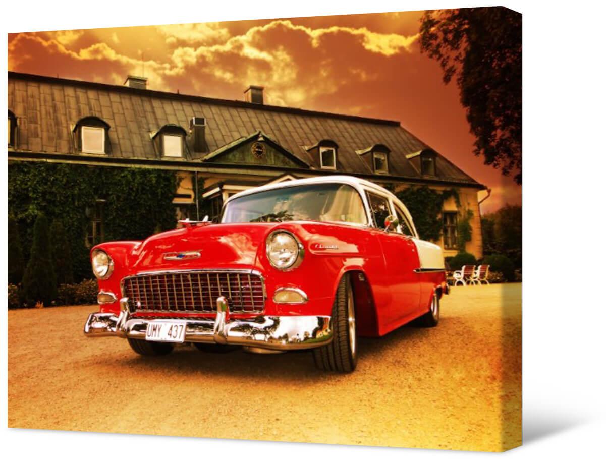 Malowanie zdjęć na płótnie Retro Chevrolet. Uzupełnia wnętrze kolorowym czerwonym samochodem na spokojnym tle. Dla miłośników zabytkowych samochodów.