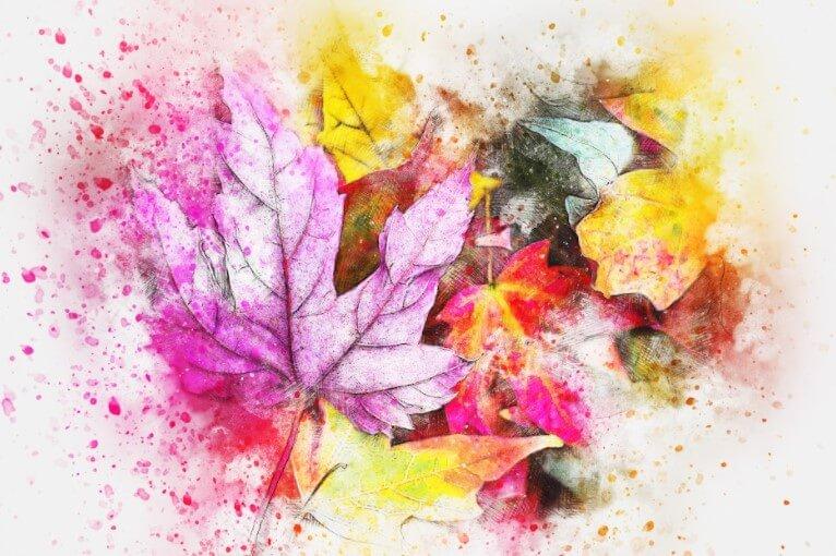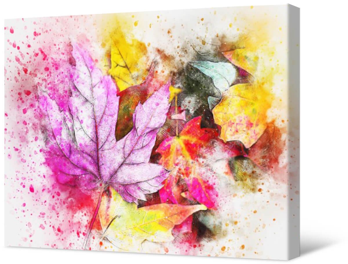 Malarstwo fotograficzne na płótnie Liście. Jesienne motywy we wnętrzach dodają przytulności i ciepła, a kolorowe kolory akcentują. Obróbka akwareli pozwoliła uzyskać szczególnie delikatny i piękny obraz.