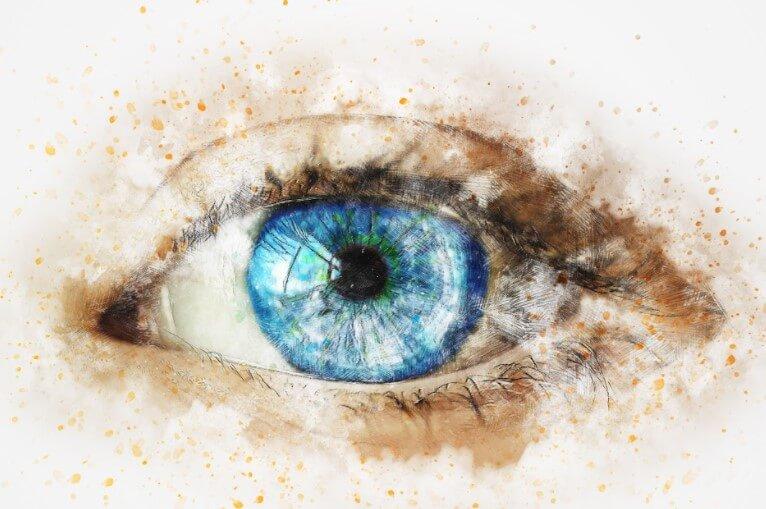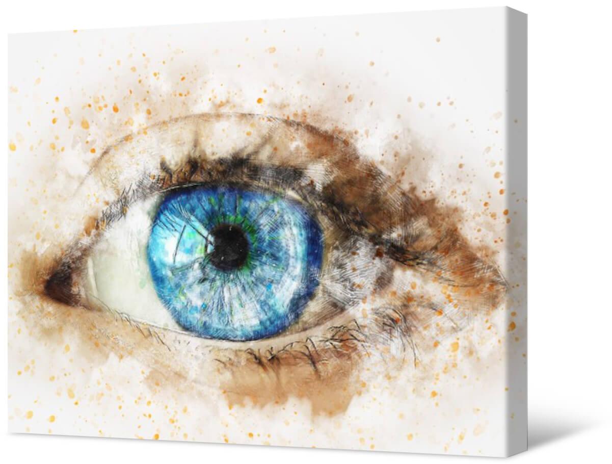 Fotografia na płótnie Oko. Uroczy wygląd niebieskich oczu będzie przyciągał i przyciągał uwagę. Obróbka akwareli pozwoliła uzyskać szczególnie delikatny i piękny obraz.