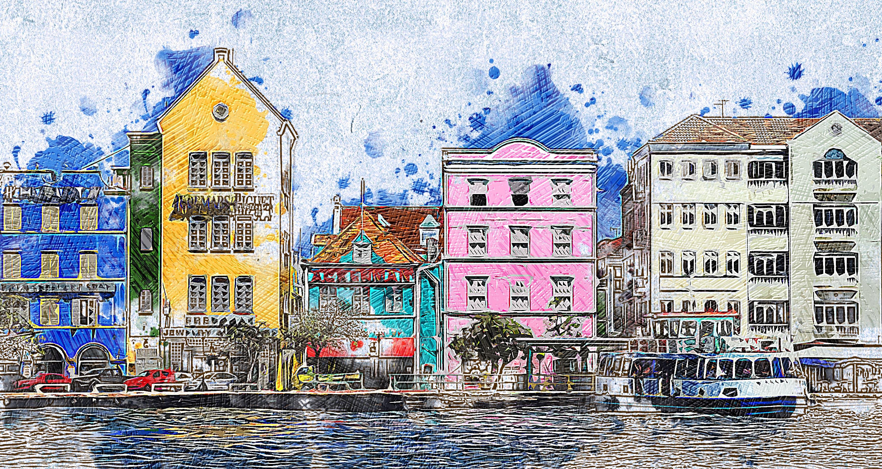 Jasne wielobarwne domy na skarpie rzeki osłabiają szarość jesiennych dni. To zdjęcie poprawi Ci humor w szare dni