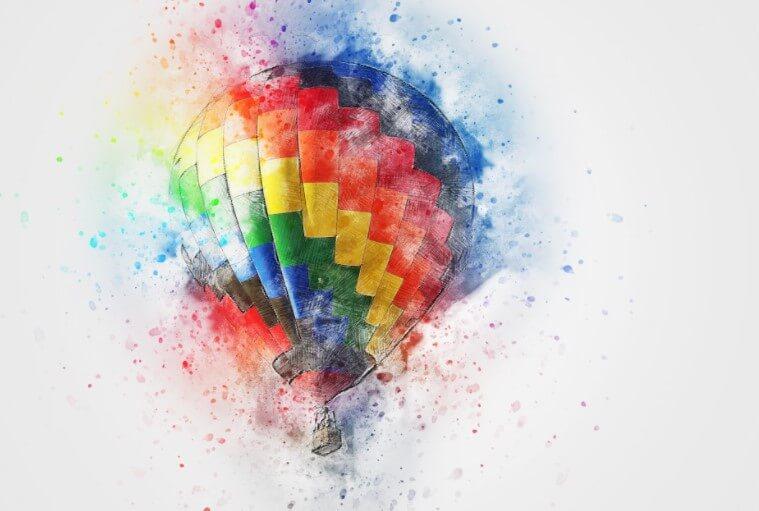 Malarstwo fotograficzne na płótnie Balon. Doda wnętrzu lekkości i poczucia lotu. Obróbka akwareli pozwoliła uzyskać szczególnie delikatny i piękny obraz.