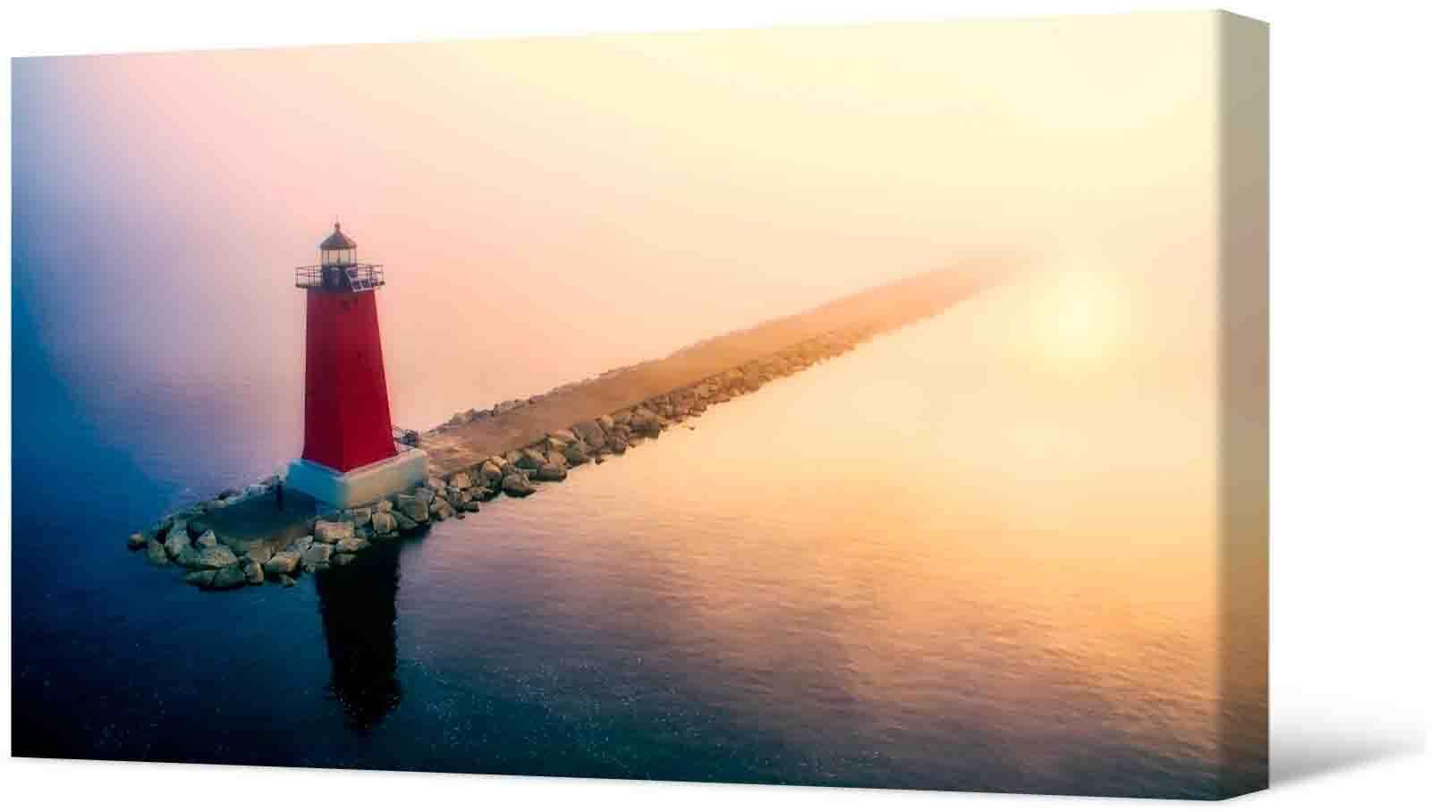 Obraz na płótnie fotograficznym - Czerwona latarnia morska na przylądku nad morzem
