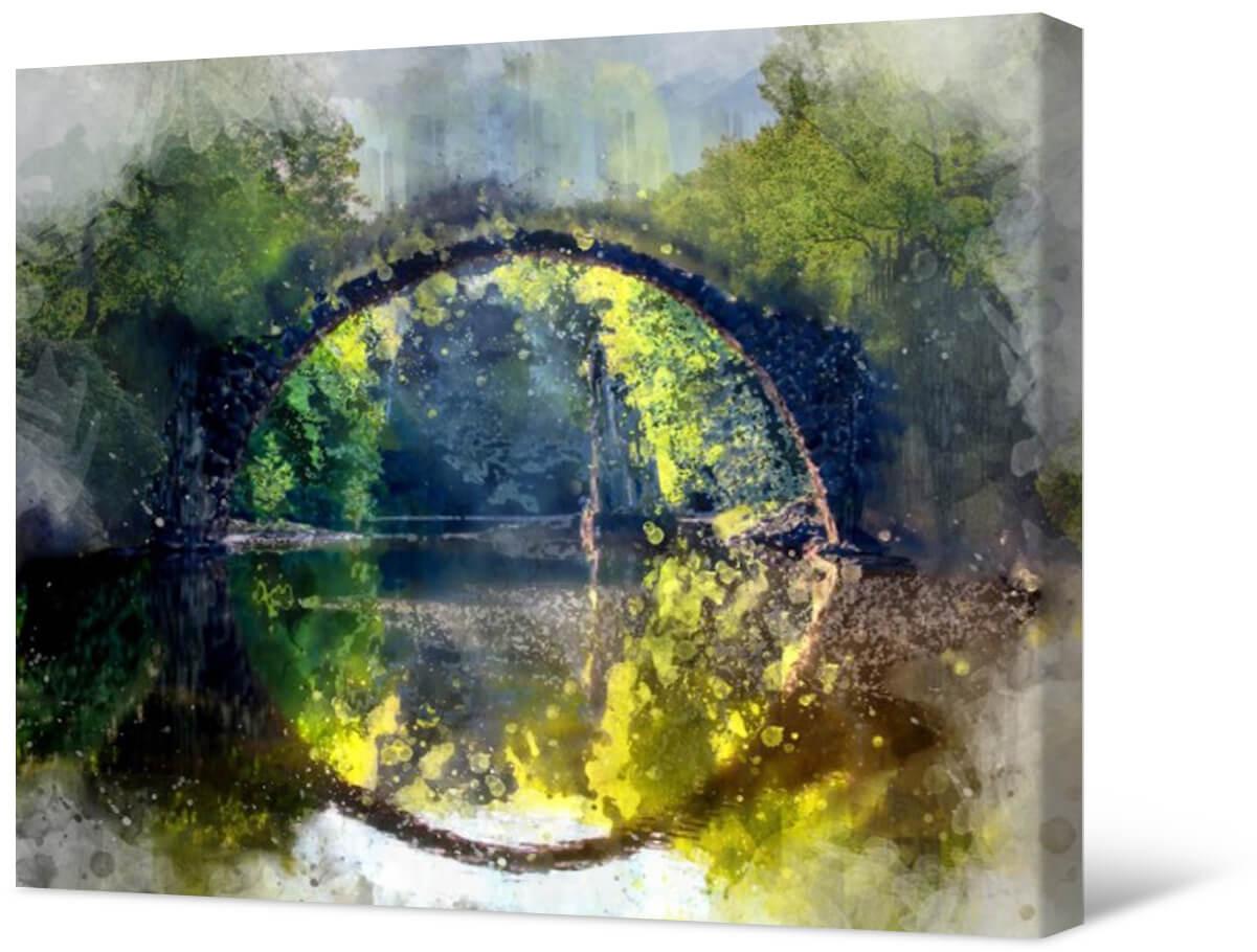 Malowanie fotografii na płótnie Okrągły most. Obróbka akwareli pozwoliła uzyskać szczególnie delikatny i piękny obraz.