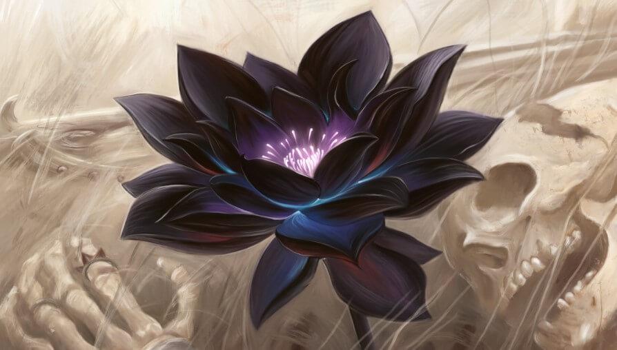 Czarny lotos — grafika autorstwa Chrisa Rahna. Kontrast jasnego lotosu i szaro-brązowego tła dodaje tajemniczości i tajemniczości.