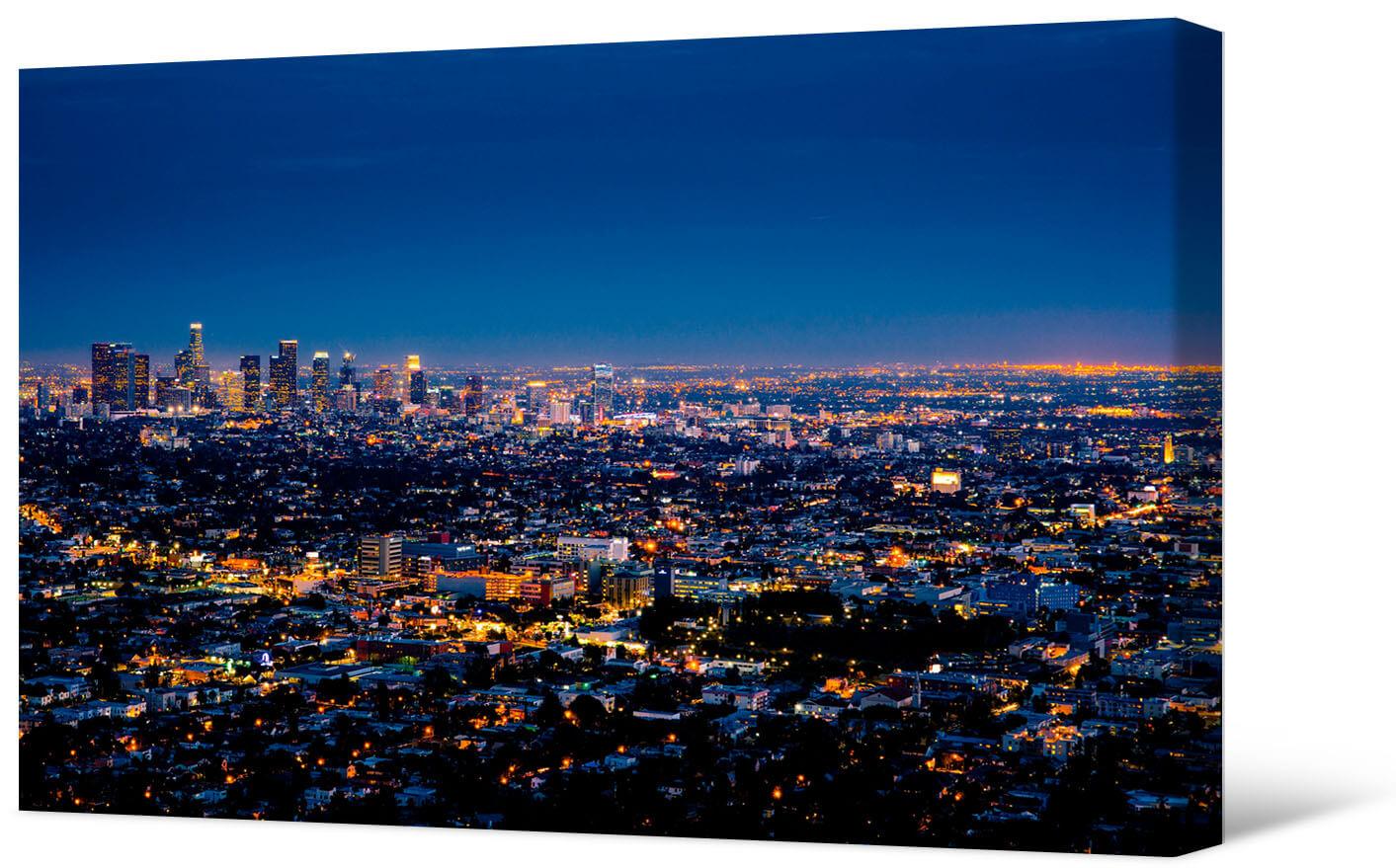 Fotografia na płótnie - Widok na metropolię nocą. Pod tym kątem artysta otwiera wspaniałe otwarte przestrzenie. Miasto żyje nawet nocą. Jego ogromna skala i światła są imponujące i oszałamiające.
