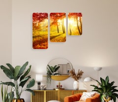 Modułowe obrazy w przedpokoju stworzą przyjazną i stylową atmosferę. Umieść je nad komodą lub na pustej ścianie, aby dodać akcent i zwrócić na siebie uwagę.