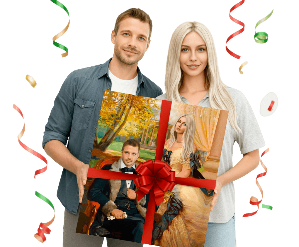 Coraz więcej osób decyduje się na portret w królewskim stylu, ponieważ jest to idealny prezent na urodziny, rocznicę, ślub czy jako wyjątkowa dekoracja do domu. Taki obraz przyciąga wzrok i wzbudza zachwyt swoją formą – połączeniem realistycznych rysów twarzy ze stylizowanym strojem i historycznym tłem. Dzięki temu portret wygląda jak prawdziwe płótno dawnych mistrzów, mimo że powstał na podstawie współczesnego zdjęcia.