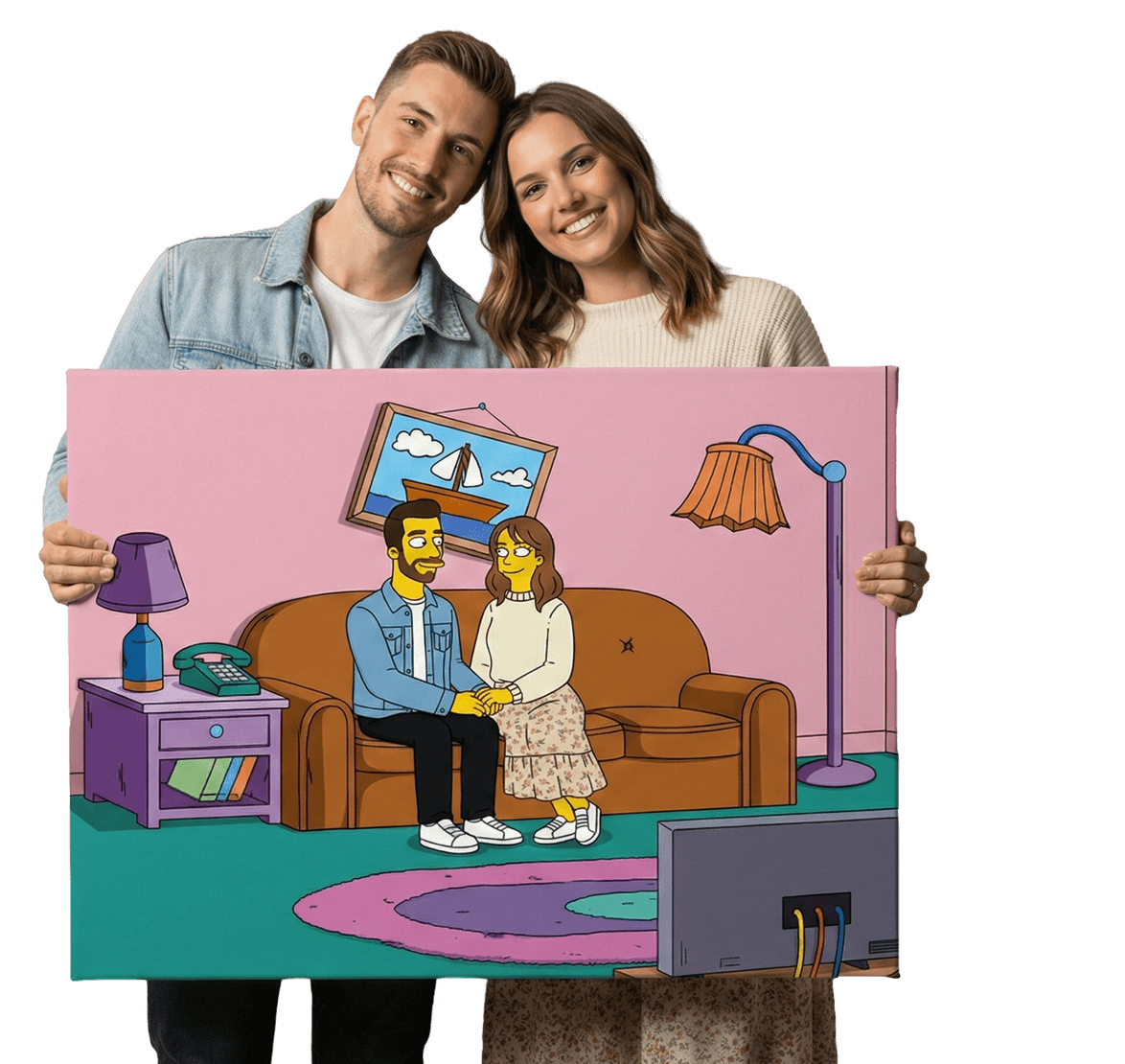 Zamówienie portretu Simpsonów na płótnie lub papierze w ramie jest łatwe i szybkie!